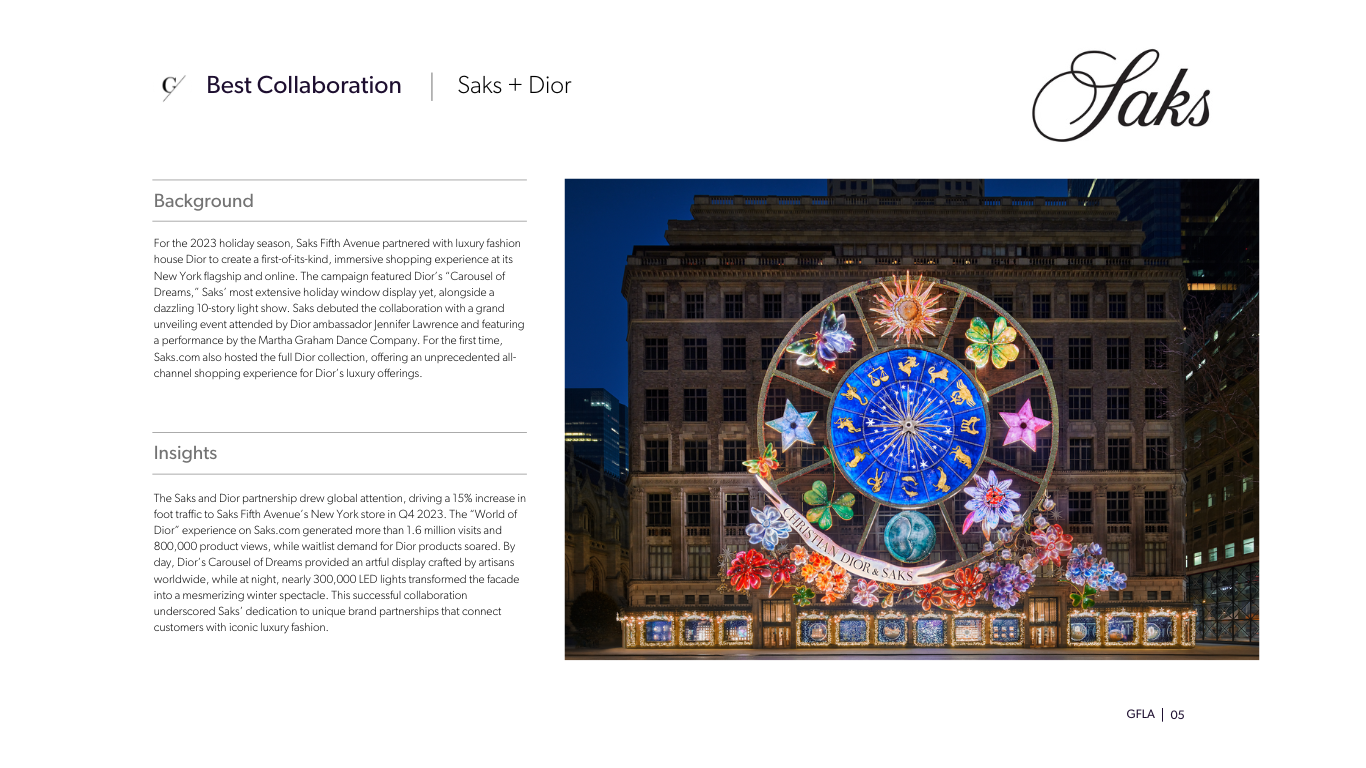 Saks won Best Collaboration by elevating its iconic holiday season with a first-ever collaboration with Dior, merging luxury fashion with immersive holiday magic. The partnership brought Dior’s “Carousel of Dreams” to Saks’ New York flagship through a stunning light show, elaborate holiday windows and a special event featuring Dior Ambassador Jennifer Lawrence and the Martha Graham Dance Company. The collaboration also launched an exclusive World of Dior shopping experience on Saks.com, drawing 1.6 million visits and increasing foot traffic by 15% year-over-year. With nearly 300,000 LED lights and online demand surpassing expectations, the partnership set a new standard for luxury brand collaborations.