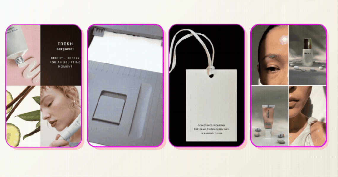 When Merit wipes its grid, Morin knows it may lose out on some sales driven by Meta ads, for example. “When I click a Facebook ad and I go to a profile that has no posts on it, and I’ve seen an ad about a five-minute morning [makeup routine it offers], it’s absolutely a break in logic,” she acknowledged. Some shoppers will wait to see what’s coming, but “the longer the tease period, the more you’re delaying sales, she said, adding, “You have to be comfortable with that.” Morin is. “As long as they’re interested in the story, I care much more about that investment than I do about the immediate purchase.”