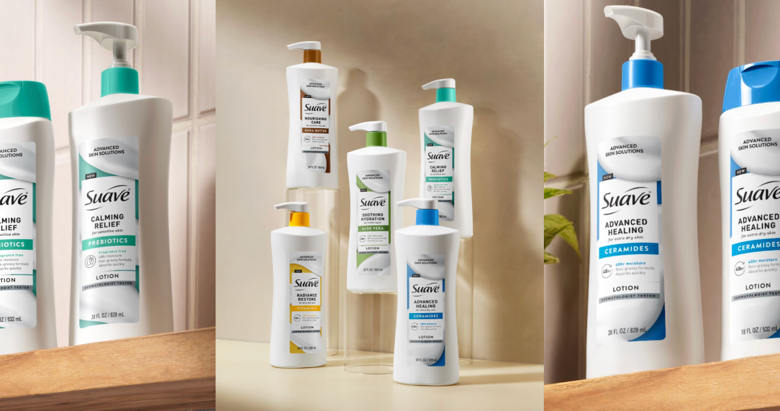 To fill this space, Suave is launching a range of new body care at Walmart. Out on Monday, the new Advanced Skin Solution body-care line includes five body moisturizers priced under $6 each. Each targets a specific concern including sensitive skin, dull skin, dry skin or extra dry skin, plus one offering for normal skin. Each formula is allergen-, paraben- and dye-free, dermatologist-tested and cruelty-free, Lopes told Glossy.