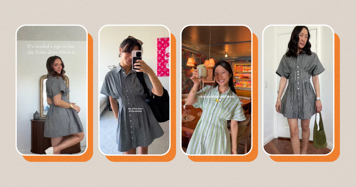 Stampone and her team are seeing the dress being coined on social media as “the summer intern dress,” which initially surprised Stampone, who doubted that interns would be wearing shirt dresses. “And then our new merchandise assistant came in on her first day in a black Tobie,” which proved the trend, she said.