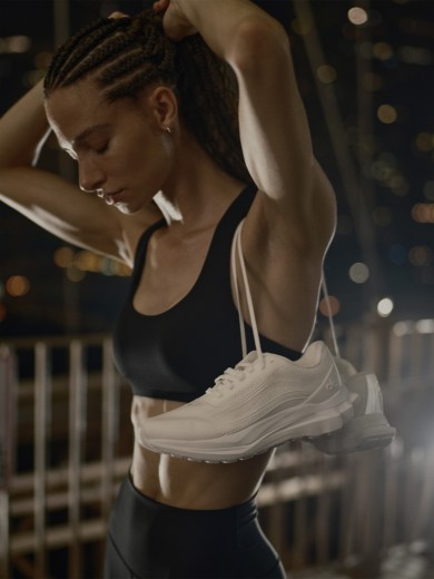 “The way the Runner is engineered is to keep you running on your toes, which is the proper way to run,” said Summer Nacewicz, Alo’s evp of marketing and creative. “When you put them on, it changes your posture and tilts you forward. And as you run, it makes it easy to keep proper form.” According to the brand, the style is made with 70% recyclable materials.