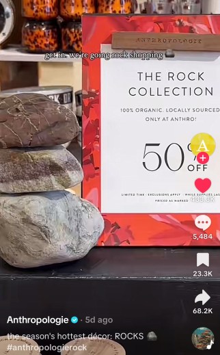 On TikTok, the hottest purchase of the week is … a rock. It started on September 14, when Phoebe Adams posted a video showing her boyfriend Dan DiLiberto (the two share a TikTok account under the name @phoebeanddan, where they have over 300,000 followers) her new rock from Anthropologie, which she called the hottest new home decor item and said it was on sale for $150. Since then, Adams has posted videos showing the “expensive” rock to both her own mother and DiLiberto’s mother. Soon enough, Anthropologie seized the moment — creating in-store displays of, you guessed it, (decorative) rocks. “The rock trend started with a fan, a sense of humor and a moment of cultural magic—and we knew we had to meet it with the same spirit,” said Anthropologie CMO Barbra Sainsurin. “At Anthropologie, we believe in showing up where our community is, with creativity that feels authentic. This moment proved what’s possible when you move fast and lean into the unexpected with intention and heart.”