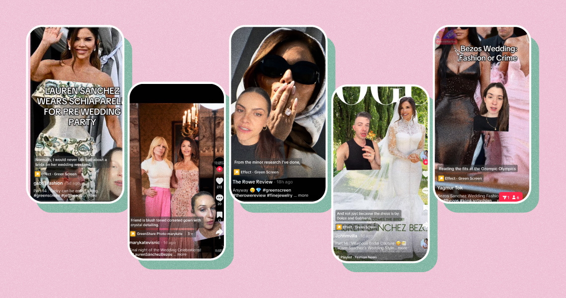 The social media response to the Sánchez-Bezos wedding painted a different picture. TikTok users called her wedding looks “sinister” and likened the event to “Capitol City celebrating during the Hunger Games.” The backlash extended to the IRL realm, as well: Local activists from the “No Space for Bezos” group took to the streets of Venice to protest Bezos renting out much of the city of Venice for his wedding weekend, whose attendees included the likes of Leonardo DiCaprio, Kim Kardashian and Edward Enninful.