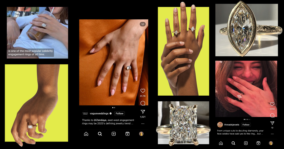 Celebrities have long since fueled consumer culture, with jewelry trends no exception. But social media has given consumers a more intimate window into celebrities’ lives, including their engagement ring choices. And with the rise of fast-paced platforms like TikTok and a growing acceptance of lab-grown diamonds, even the resolutely traditional engagement ring is subject to quickening trend cycles.
