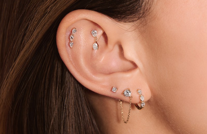 Studs originally entered the market with a store in Soho, which quickly gained buzz for its regular “it” girl visitors including Karlie Kloss and Kaia Gerber. The company has since continued to roll out locations across the country and is set to hit 30 stores by the end of the year. Its next store will open in Atlanta next week, followed by locations in NYC’s Meatpacking District, San Diego and Boston. At the same time, the company’s Studs on Wheels mobile pop-up has delivered its popular concept of “earscaping” to locations including the UCLA campus and BravoCon. Conch piercing is among ear-piercing trends gaining traction, Bubbers said.