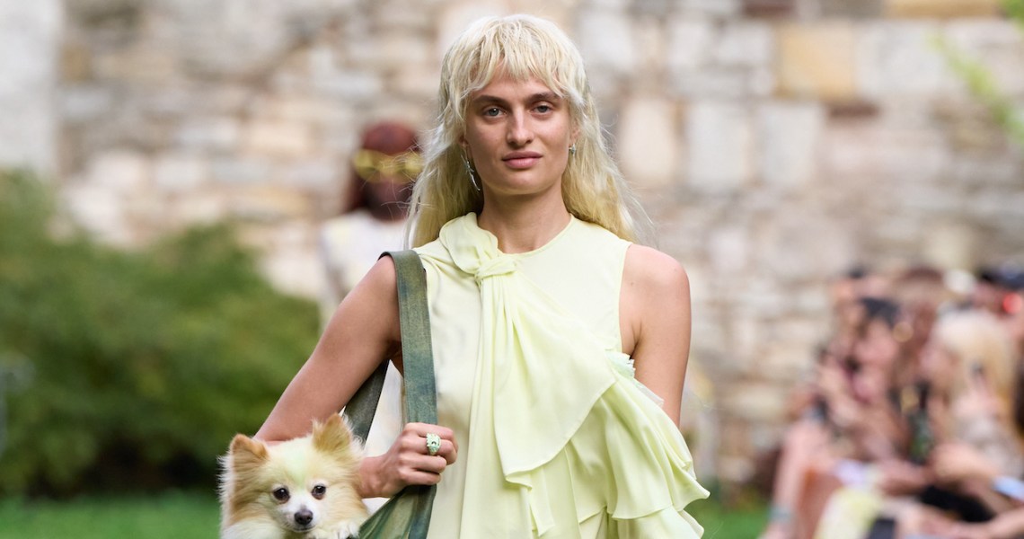 Taymour definitely put on a show for this year’s Collina Strada SS25 show. The show’s theme was “Touch Grass”, a command models took quite literally. As seen in this TikTok posted by Harper’s Bazaar, some models rolled around on the ground, flinging grass and dirt, while others nonchalantly mowed the grass. These runway antics and other catchy media exploits, like the celebrity appearance of the Green Lady of Brooklyn with her pet iguana, created a lot of social media buzz for Collina Strada. The brand’s Instagram page has gained over 10,600 followers since Friday’s showcase, a 4% jump in followers in five days, according to Social Blade analytics.