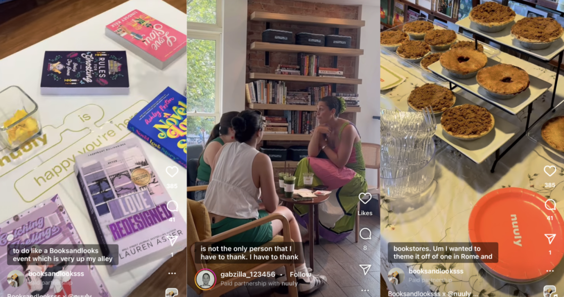 In September, Morgan Gillespie (@booksandlooksss; 21,000 Instagram followers) hosted her first of two Nuuly-sponsored events: a Brunch Book Swap at Quail Ridge Books in Raleigh, North Carolina. At the event, attendees swapped books they love, received $20 gift cards to the book store and participated in activations like bookmark decorating. Last summer, a member of the Nuuly influencer team reached out to Gillepsie to gauge her interest in hosting an event like this, noting the brand’s interest in partnering with smaller creators with niche communities.