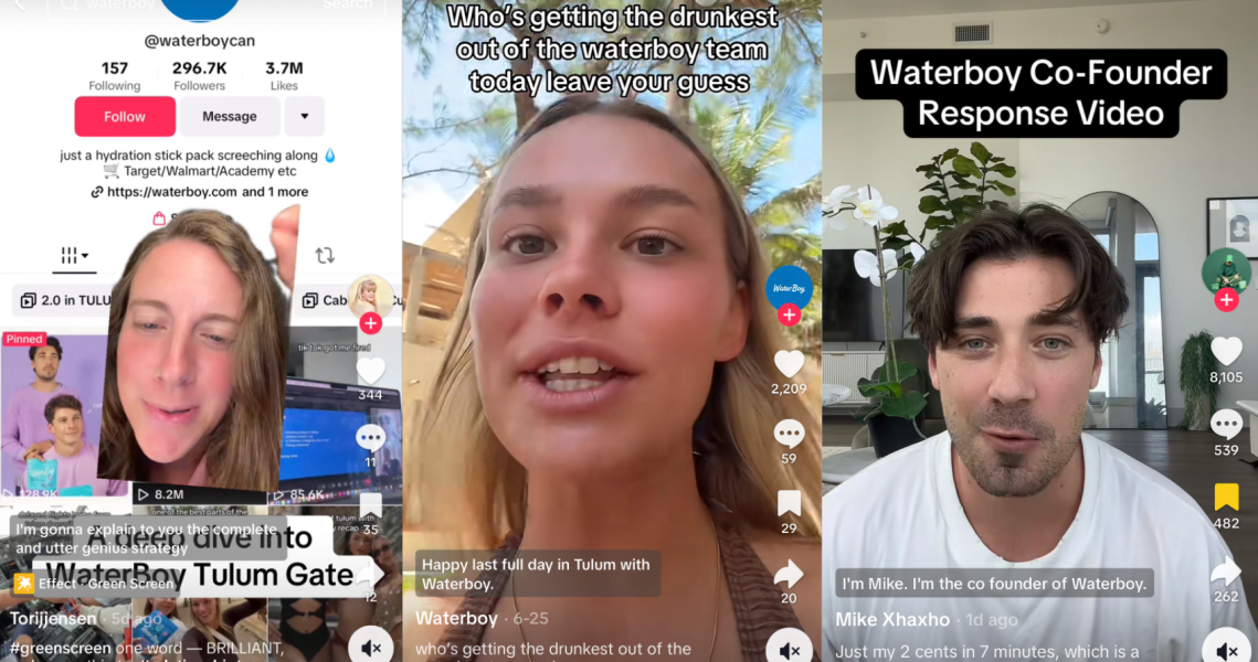 Over the weekend, TikTok was flooded with posts of major influencers — including Kennedy Eurich, Brandon Edelman, Halley Kate McGookin and Jazmyn Smith — partying in Tulum with the electrolytes brand Waterboy. At the same time, dozens of posts criticizing the brand’s social media strategy for the trip began circulating: Why weren’t the influencers showing the products? And don’t electrolytes help thwart hangovers? Why, then, were they posting about how hungover they were? The marketing experts on TikTok (read: everyone) had questions.