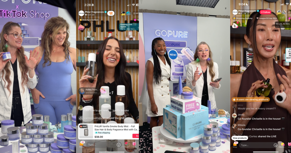 And while some believe TikTok Shop is only successful for brands with products that provide immediately visible transformations, like makeup, categories across beauty are flourishing. For example, fragrance brand Phlur began leaning into live shopping at the start of the year. “We always like to be at the cutting edge of everything, especially digitally focused. We’d already seen success on TikTok Shop, and knowing that live selling was the evolution of the platform, it was something we wanted to test into,” said CMO Erica Dunivan.