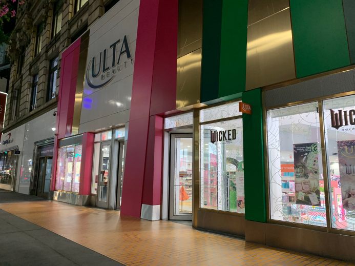 Both Aldo and Ulta Beauty are taking the opportunity to create in-store experiences to promote their “Wicked” lines. For its part, Ulta transformed the outside of its stores in NYC’s Herald Square and L.A.’s Santa Monica in pink and green. Each also has a “yellow brick road” leading up to and continuing inside the store.